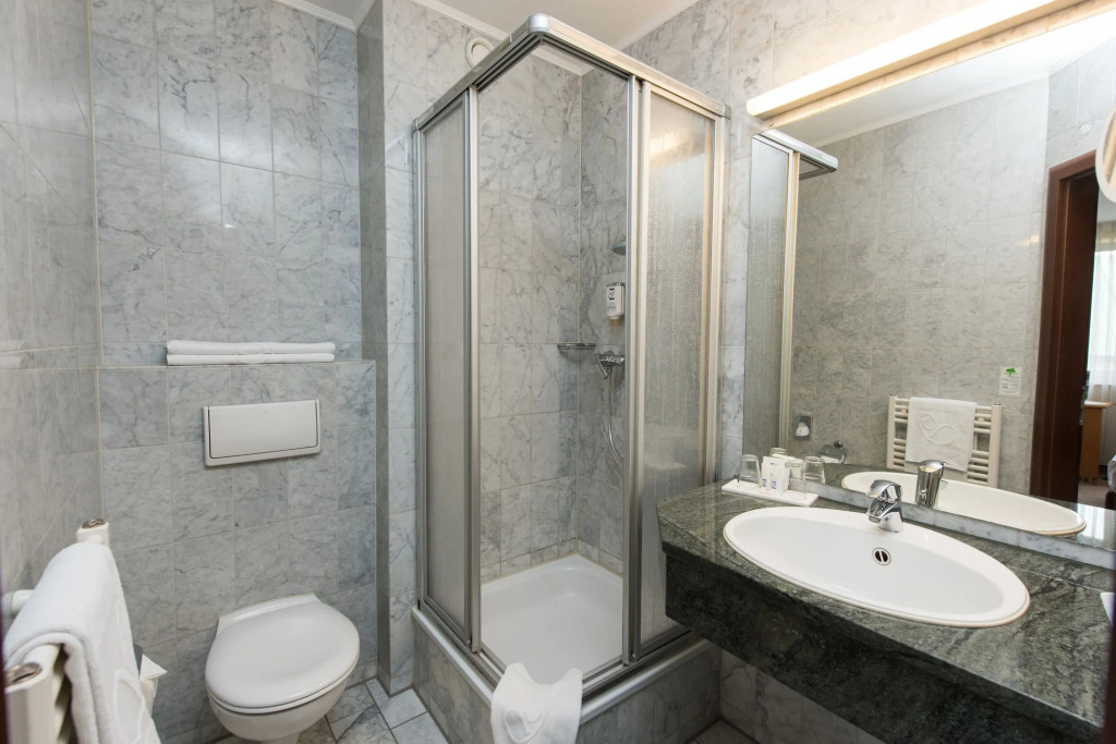 In the room, there is a shower, a TV and a bathrobe. The room equipment depends on its category.