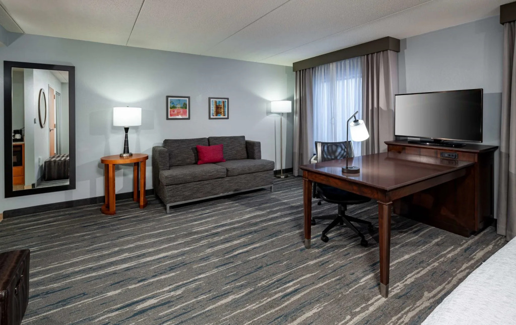 Want to save money while travelling? It’s easy! Hotel «Hampton Inn Suites St. Louis at Forest Park» is located in St. Louis. This hotel is located in 7 km from the city center. You can take a walk and explore the neighbourhood area of the hotel — Jewel Box, Turtle Playground and Pagoda Circle.